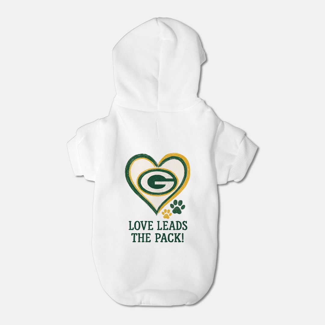 Packers Football - Love Leads the Pack - Dog Cat Pet Fleece-Lined Sweatshirt Hoodie - Small Breed